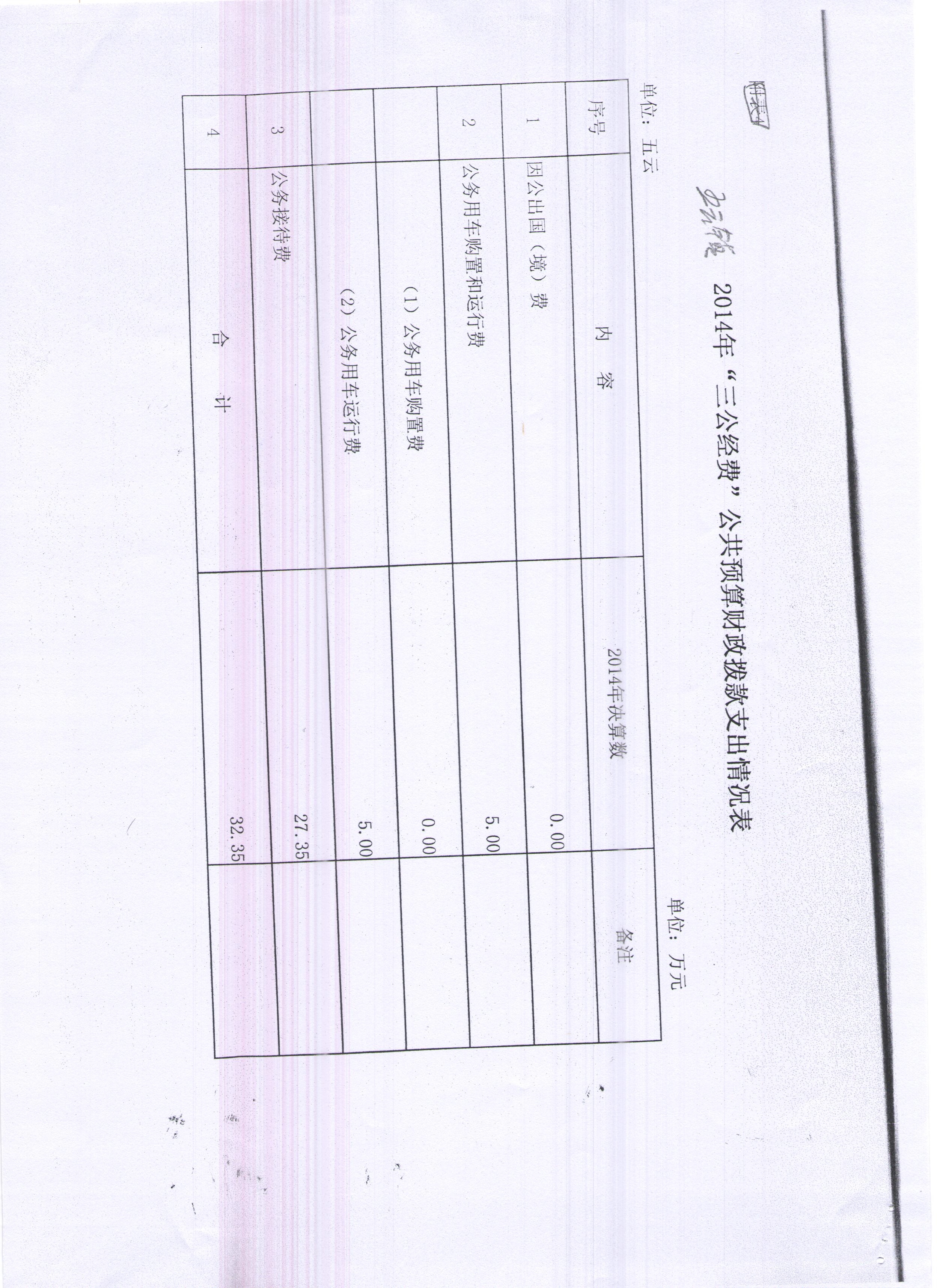 五云鎮2014年“三公經費”公共預算財政撥款支出情況表