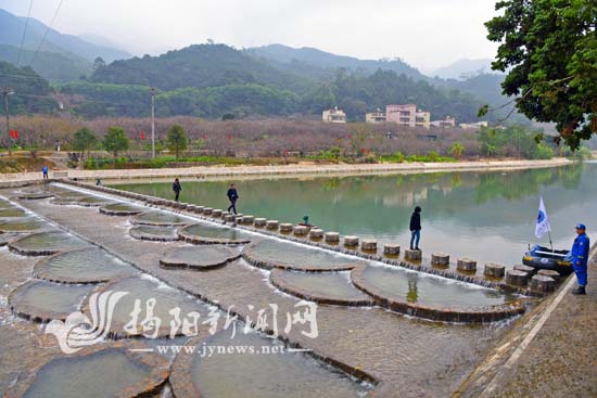 石內河樟樹下村河段水面寬闊,村里利用水位高差,以梅花花瓣為形,以周邊的蒼翠青山、梅林、山村人家為背景,在不影響河道水利防洪的基礎上打造疊水堰壩,配合當地“梅”的旅游特色,在河道中央修建花瓣形狀的溢水水壩,水壩上面是五瓣梅花石樁,連接著石內河兩岸。踏上梅花樁,源源不斷的河水從石內河上游流下來,清澈的水一級級往下流,山清水秀的美景盡收眼底,遠山近水之間,組成了一幅和諧美麗的鄉村畫卷。