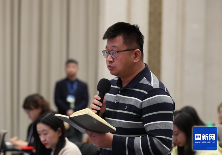 中央廣播電視總臺央廣記者提問(劉健 攝)