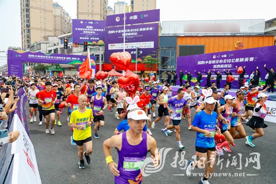 10日上午8時,2024中國田徑協(xié)會10公里精英賽揭西(棉湖)站在千年古鎮(zhèn)棉湖燃情開跑。來自五湖四海的4000名跑者用腳步丈量揭西之美,用汗水書寫紀錄。