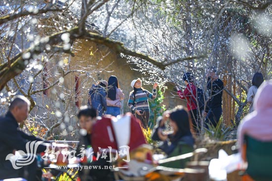 “聽說五云鎮冷柴坪的梅花開了,便帶上工夫茶具和家人一起來這里喝茶賞花?!弊诿坊湎屡莶璧暮蜗壬硎?,恰逢周末,聽說這邊的梅花開放,便趁著空閑時間來走走看看,放松身心。在何先生看來,在繁忙的工作生活之余能來到這里,欣賞美麗的梅花,感受大自然的美好,實在是一種難得的體驗。